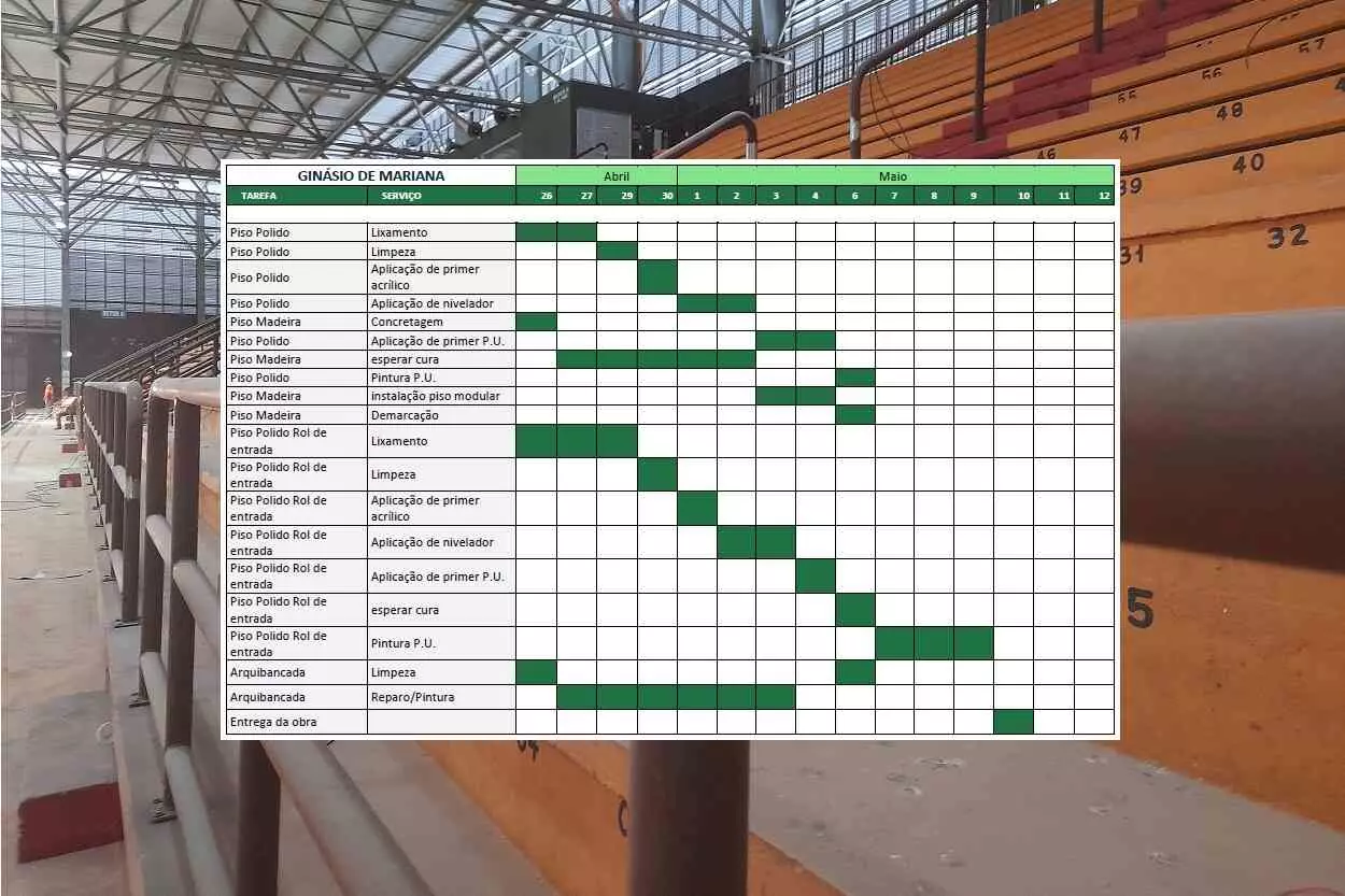 Inaugurada em agosto de 2013, na gestão anterior de Celso Cota (PSDB), a Arena Mariana passou apenas por algumas ações pontuais de manutenção, tenho sido, ao longo desses quase 11 anos, para atividades esportivas e outras alheias à sua finalidade, resultando em situações de degradação do piso da quadra, sucateamento da iluminação, placar eletrônico e banheiros, por exemplo.