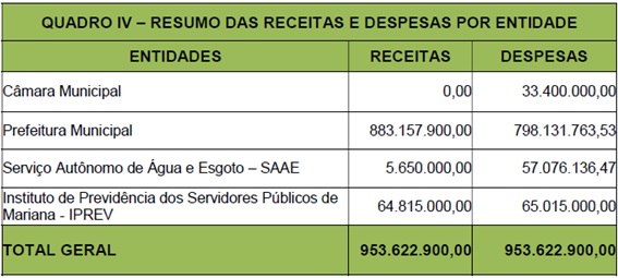- Recursos Vinculados a Fundos Municipais com receita própria: Fundo Agropecuária, Fundo Mariana Histórica e Fundo Municipal do Patrimônio Histórico, no valor de próximos R$ 2 Milhões;