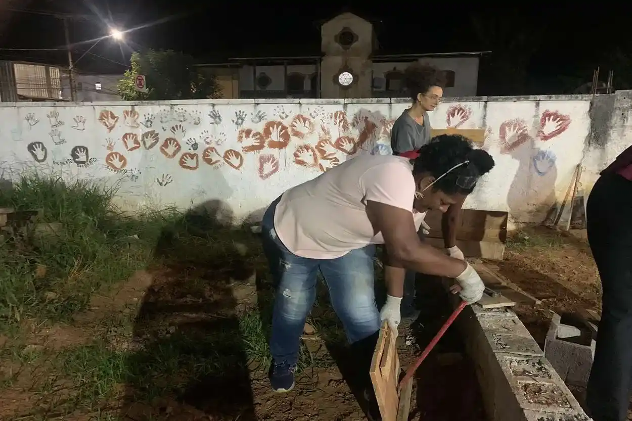Alunas do curso de pedreiras colocam “a mão na massa” - Foto: Amanda de Paula Almeida/Agência Primaz