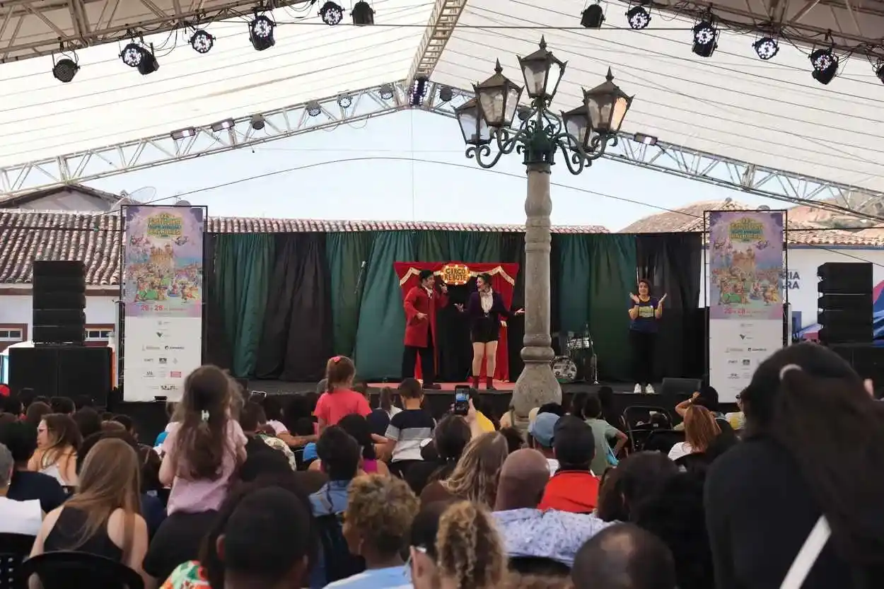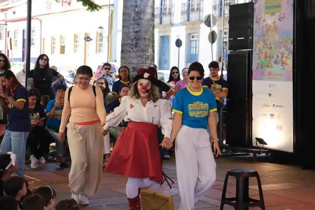 A tarde começou no Jardim com o espetáculo da palhaça Jojoba, presença constante em eventos culturais de Mariana. Sua apresentação envolveu o público em jogos e brincadeiras musicais, transformando espectadores em parte de uma verdadeira banda improvisada. “Eu não tenho nem palavras para descrever a felicidade”, disse ela. “Tem um encanto nesse evento que é tão lindo, tão a cara de Mariana. Eu não me imagino não estando aqui”.