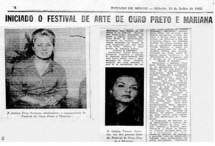 A contribuição de Erna Antunes para Mariana não ficou somente na Escola de Artes, mas transcendeu a esfera local. Em julho de 1965 foi a idealizadora e organizadora do 1° Festival de Inverno de Mariana e Ouro Preto, pioneiro do gênero no Brasil. A artista percebeu que as duas cidades deveriam ser parceiras em todas atividades culturais, o que foi ratificado pelo Festival de Inverno da UFMG e posteriormente pelo Festival de Inverno da Universidade Federal de Ouro Preto.