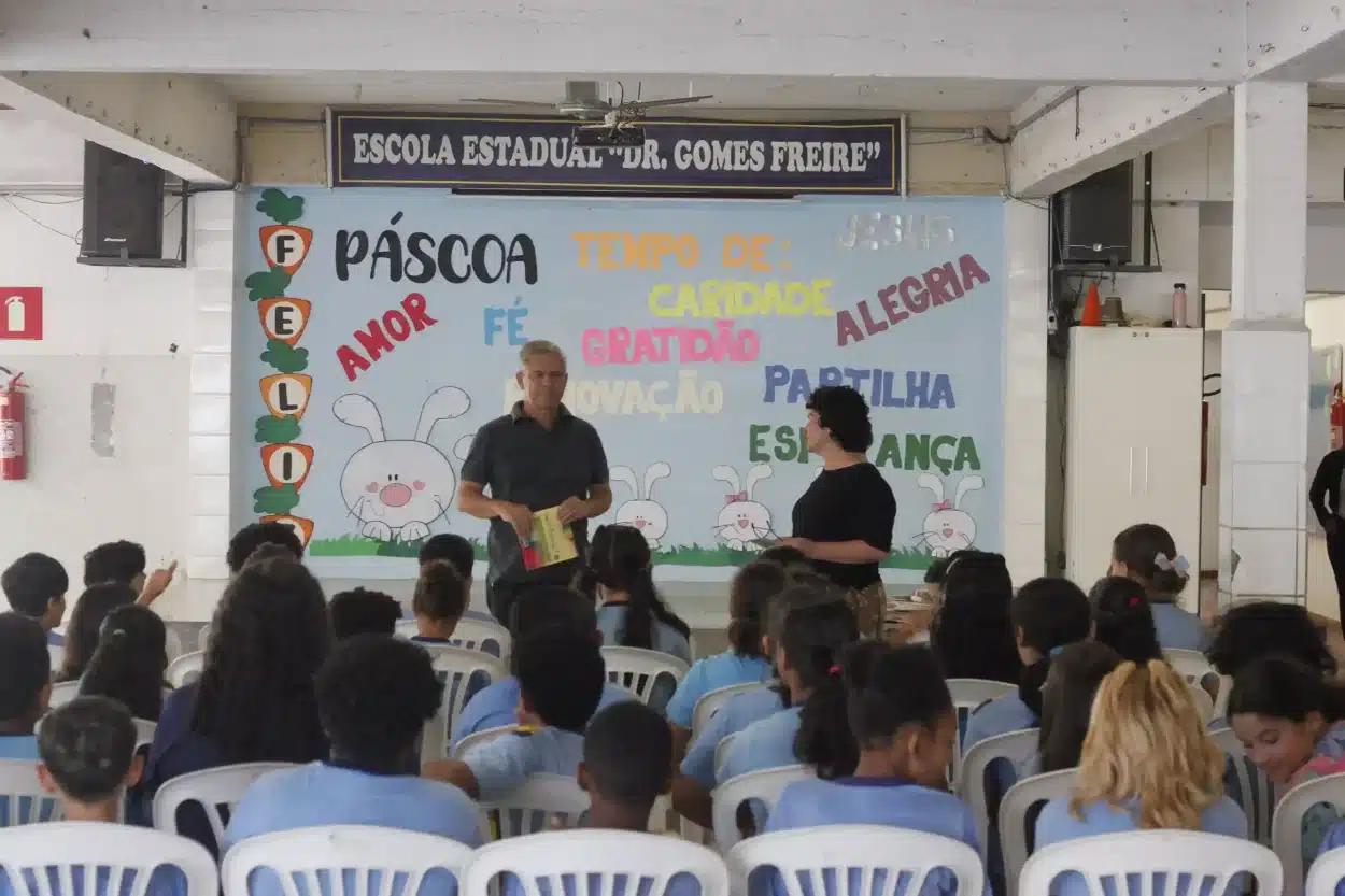 Ao final da atividade, os alunos receberam exemplares do livro, que puderam levar para casa.