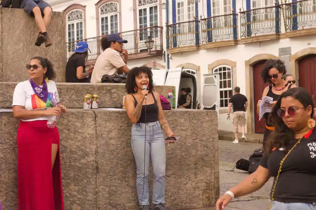 Entre as falas das mulheres presentes na mobilização, Bruna Truocchio, repórter da rádio Itatiaia Ouro Preto, citou casos de feminicídio e violência doméstica que tiveram repercussão nacional nos últimos meses e se reconheceu também como uma vítima. “Me emocionei porque todas nós já passamos por algum tipo de situação abusiva. Eu já passei. Isso mexe muito com a gente”, desabafou.