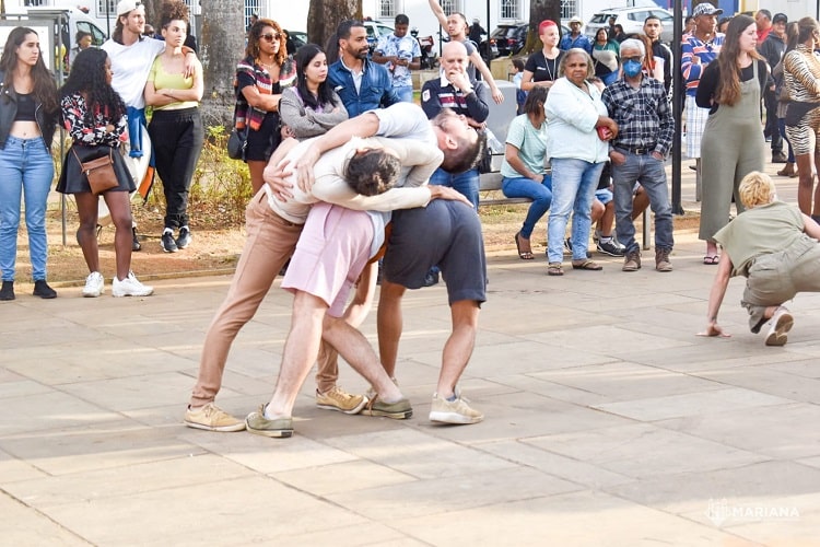 Segunda-feira (11), como parte da programação do Festival de Inverno, o Centro de Referência à Criança e ao Adolescente (Cria) de Mariana recebeu a visita da T.F. Cia de Dança. Os dançarinos vieram da capital de São Paulo, convidados pela Secretaria de Cultura de Mariana, para ministrar uma oficina de Dança Urbana Contemporânea para as crianças atendidas pelo Centro. Na tarde do dia anterior, o grupo fez uma apresentação pública e gratuita na Praça Gomes Freire (Jardim).