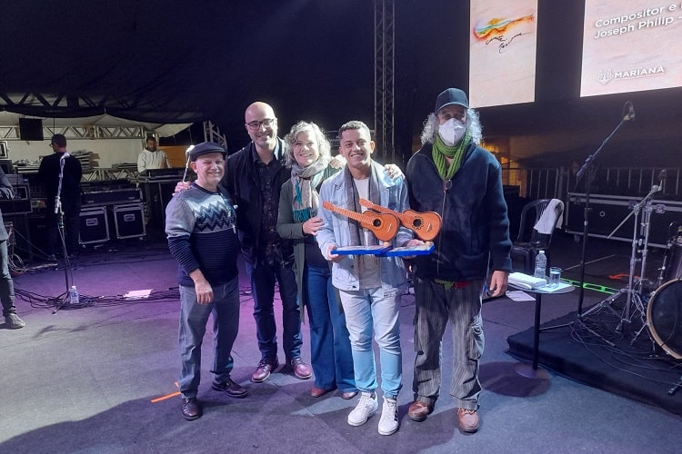 “Eu estava na expectativa, estava com medo de ser online de novo. Eu falei: ‘Meu Deus, esse ano tem que ser presencial’, porque a gente sente falta, né? E é totalmente diferente. Quando a gente sobe no palco é outra coisa, é outro mundo. Antes, na época do online, tinha expectativa também, mas a gente estava em casa, estava cômodo, né? Agora estando no palco, vem esse desafio de você fazer a performance, mostrar mesmo a cara ali, a identidade da música… Já traz um sentimento novo para gente, até para mostrar para o público mesmo”, afirmou Joseph Philip, que ganhou o prêmio “Escolha da Audiência”, instituído pelaAgência Primazna edição de 2021 do Festival Canta Mariana.