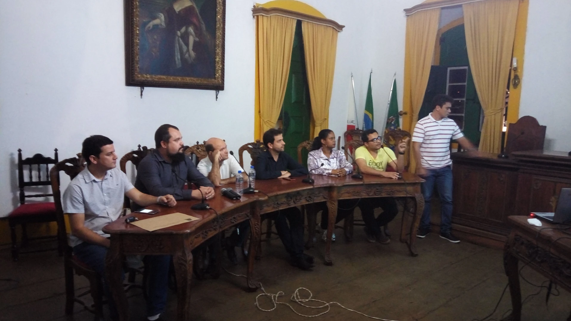 Diretor Executivo do SAAE de Mariana, Amarildo Teixeira Júnior, faz apresentação da prestação de contas do 2º quadrimestre de 2019 - Foto: Luiz Loureiro/Agência Primaz