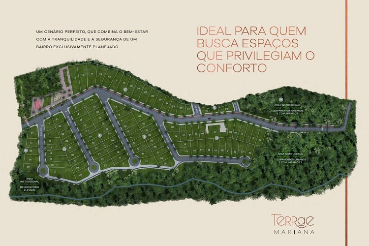 Para pré-venda de lotes, à vista e em condições especiais, o Grupo 3T promoveu neste sábado (04) a apresentação oficial do empreendimento Terrae Mariana, organizada pela empresa especializada, Cia Lançamentos Imobiliários, representantes de imobiliárias e clientes previamente cadastrados. O evento foi aberto com um café da manhã, seguido da chamada dos clientes, por ordem de chegada, para apresentação de detalhes e escolha dos lotes colocados à venda nessa ocasião especial. O empreendimento, conta com 106 lotes residenciais e comerciais, com áreas de 360 a 950m2, duas áreas institucionais, pista de caminhada e acesso a trilha de mountain bike, além de exclusivos espaços de lazer, compostos por redário, quadra de peteca, mesas de piquenique, playground e praça pet. A infraestrutura, cuja implantação já está em curso com a realização de serviços de terraplanagem, prevê a possibilidade de início das construções em dezembro de 2023.