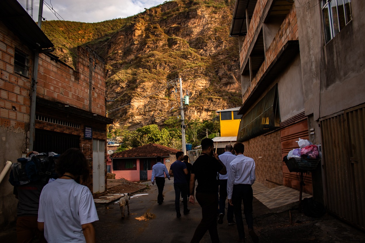 Ao longo do percurso, os moradores apresentaram a infraestrutura improvisada que sustenta parte das ocupações. Paulo Tanure mostrou trechos onde o calçamento e serviços básicos foram instalados pela própria comunidade. “Esse calçamento aqui nós fizemos com nossas próprias mãos”, disse, explicando que algumas casas têm documento, outras não, e que o avanço das melhorias foi interrompido após impedimento municipal. A expansão irregular, sobretudo em áreas do entorno do Parque Estadual do Itacolomi, convive com abastecimento de água por gravidade, falta de saneamento, iluminação precária e acesso difícil às vias principais.