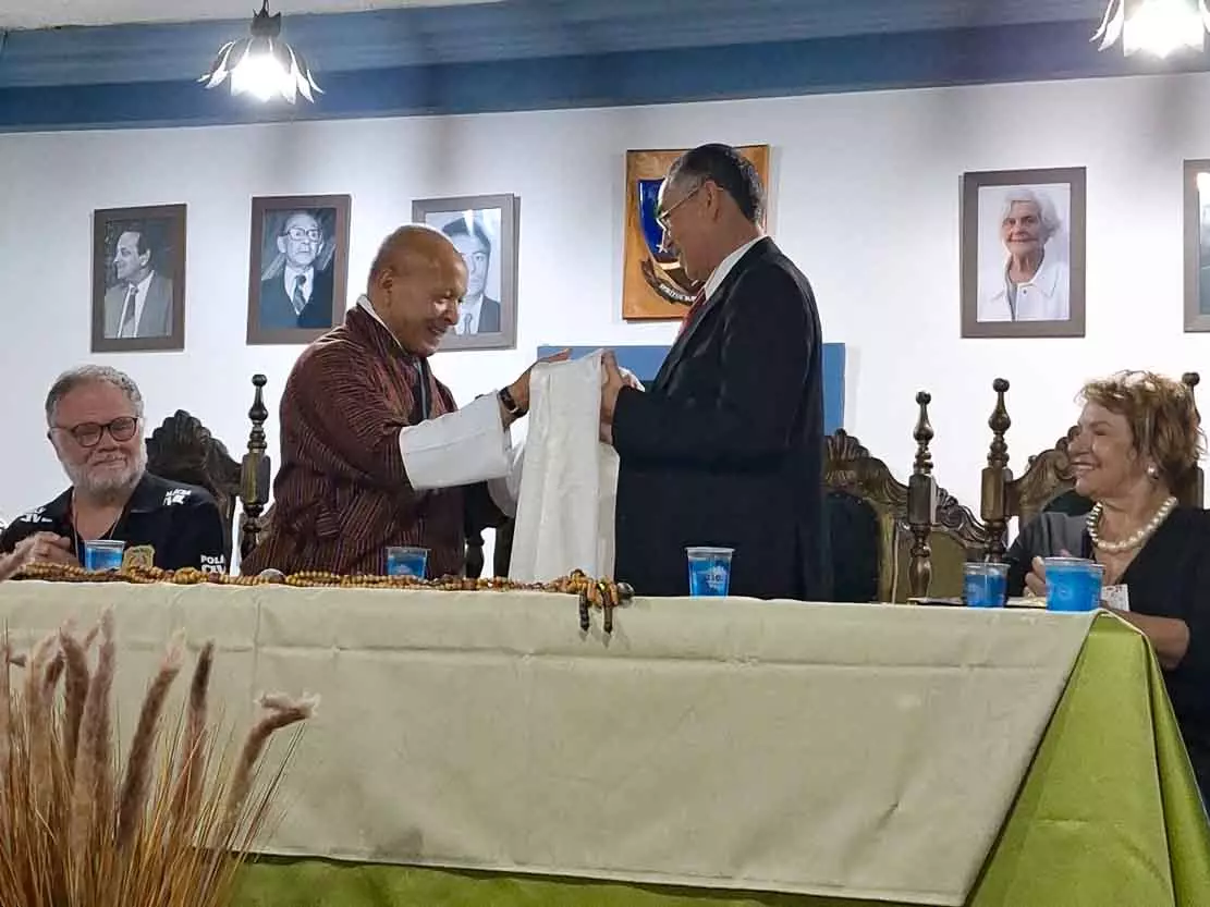 Além disso, o ex-ministro presenteou o presidente José Benedito Donadon com uma echarpe branca bordada com os oito sinais da sorte tradicionais do Reino do Butão. A echarpe é presenteada às pessoas que os butaneses honram e respeitam. Ele também recebeu presentes, como livros dos acadêmicos membros da Academia, e da vice-prefeita.